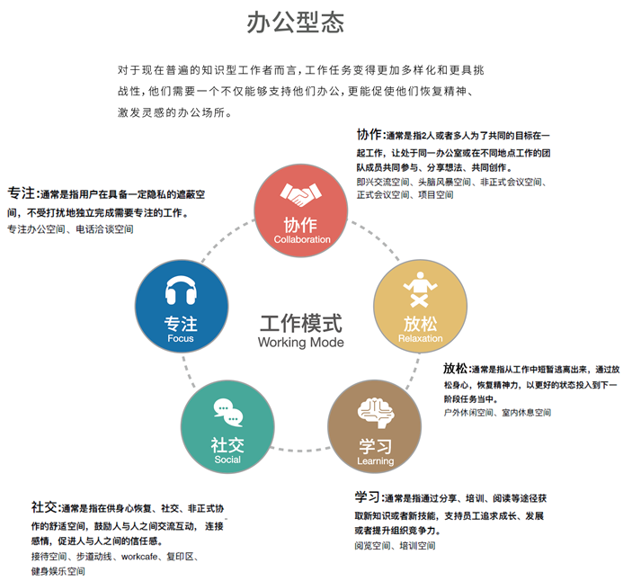 通过研究,我们提出震旦“Activa Solution”办公场景解决方案概念。Activa Office灵动办公室是基于人们的工作行为(Activity Based Working),通过创造多样化办公环境,来支持不同的办公活动,既可尽情创作和凝神思考,又可酣畅交流和快乐分享,助力为顾客打造符合未来发展趋势的、高能效办公环境。我们的价值主张是为中国企业在数字转型下提供更好的办公方式。