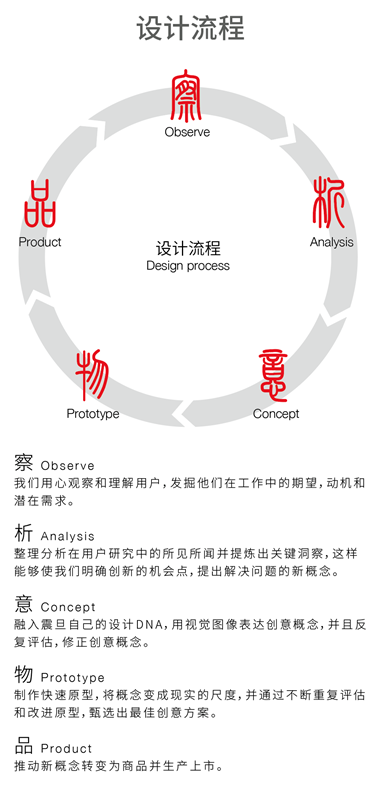 震旦创新中心(Aurora Innovation Center A.I.C)创立于2005年,震旦创新中心坚持「以用户为中心」,基于开放式创新的设计思维,不断进步,应用独特的震旦设计语言(DNA),通过服务设计驱动美学的应用,为顾客创造更高效的办公生活,协助企业成功,做到“启于心 成于形 ACTIVATE PEOPLE ENABLE SUCCESS”。创新中心下设趋势研究、工业设计、工程设计和项目管理四个部门,为亚洲地区优质的办公家具设计团队之一。
